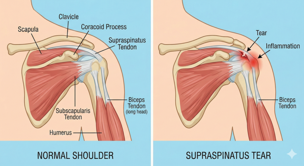 If shoulder pain persists, early specialist evaluation is essential to prevent worsening of the tendon.